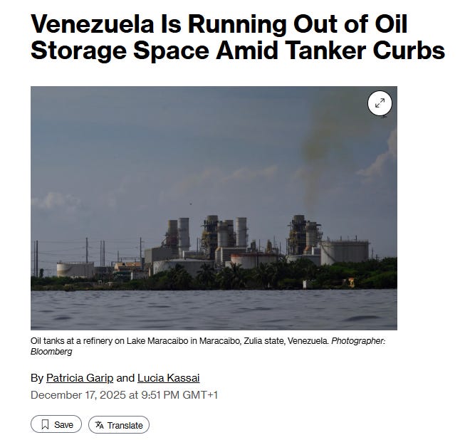 This post is not to say what will happen next here. I genuinely have no idea if Trump will stay true to his name and TACO (Trump Always Chickens Out) or if we are on the verge of an actual US military intervention in Venezuela itself. I am not entirely sure if Trump’s own White House knows, especially since regime change via military intervention goes against the desires of the isolationist wing of his coalition as well as - it seems - the president’s own desire to avoid another extended military quagmire abroad. Unlike murdering people on speedboats in the Caribbean without trial or due process, some of whom may have been drug dealers or in organized crime but we will likely never know now, the current naval blockade of Venezuela now includes a new policy which will bite Maduro in the pocketbook; the seizure of oil tankers. One oil tanker has already been unilaterally seized by the United States military and, given the risks involved, it is unclear how many ships will continue to service Venezuela’s export trade.